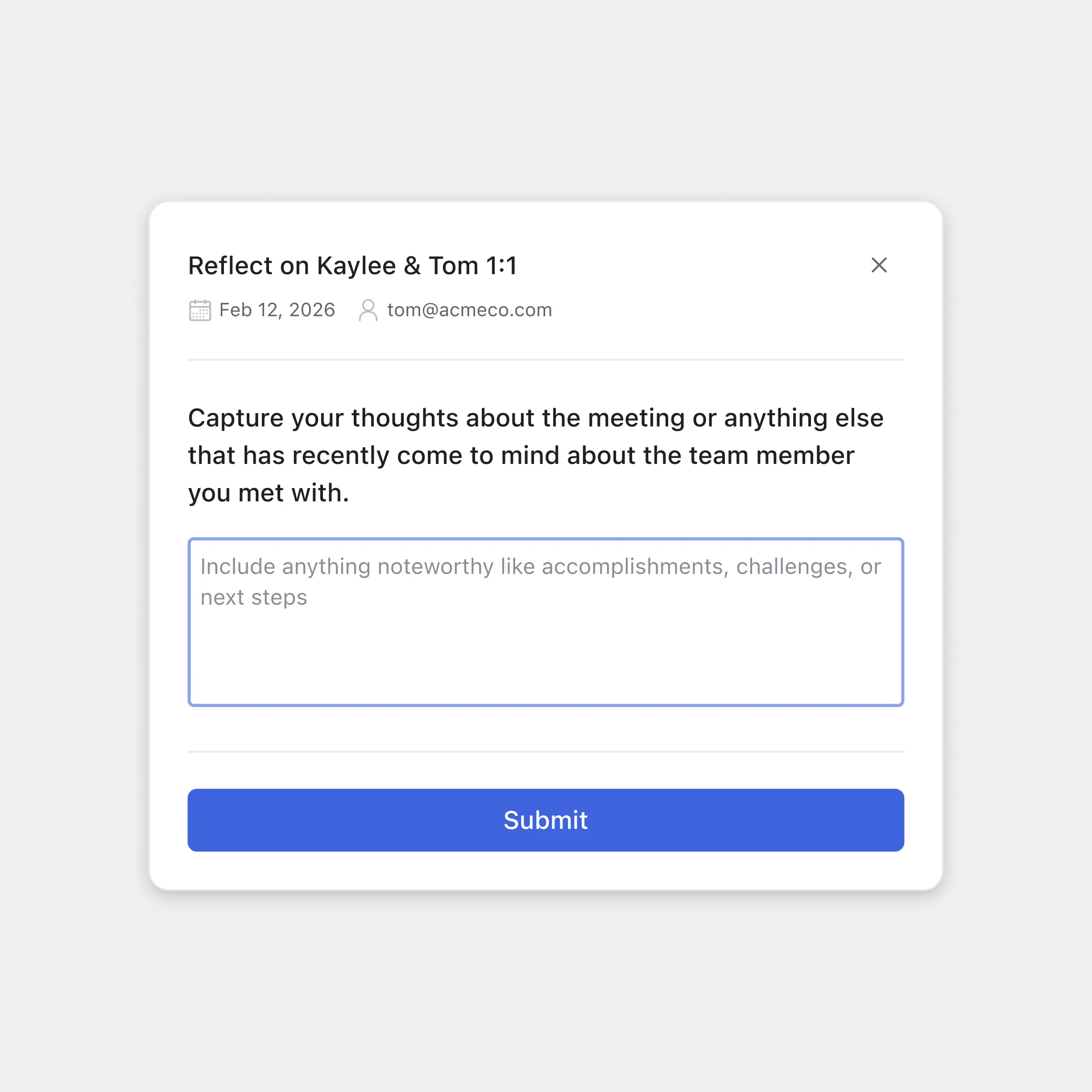 No. Reflect generates manager-ready summaries you can easily copy and paste into your existing HRIS or performance workflow.